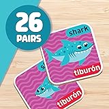 Parent & Baby Animal Memory Game: Match adult animals to their babies in this adorable memory game that builds recall, logic, and visual recognition Bilingual Learning Memory Game: Features bilingual cards to support early language exposure while kids play and learn through memory game fun Builds Focus & Brain Skills: This classic memory game encourages attention, concentration, and memory development through hands-on, screen-free play Durable, Kid-Friendly Cards: Includes 52 thick cardboard tiles (26 pairs) designed to last through countless rounds of memory game play Perfect for Ages 3+ & Versatile Play: A preschool-friendly memory game for solo or group play that supports learning, social interaction, and confidence building
