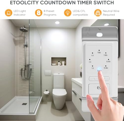 - ✓ ADAPTABLE USES: JUNLIT countdown timer switch is great for your bathroom, closet, pantry, garage, laundry room, spa, enclosed patio, and more