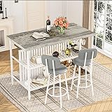 LinkRomat Kitchen Island with Storage Small Dining Table for 2, Kitchen Table Chairs Set of 2 Dining Room Set for Small Space (Grey)