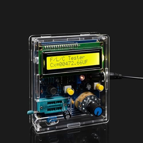 Features:Transparent acrylic shell, avoid hand contact with the board, beautiful and durable.Multi-functional measuring instrument electronic DIY kit, simple operation, easy to use.High-definition liquid crystal display, large LCD display, digital symbols show clearly, easy to read.With multifunctional rotary gear, you can choose different functions, measurement is more convenient.Can measure various non-polarized capacitance, polarized electrolytic capacitance, inductance and frequency.Specifications:Power supply voltage: USB powered DC 5V (DC power socket)Measurement range of non-polar capacitance: 1pF~2200pFPolarized capacitance measurement range: 1uF~12000uFInductance measurement range: 1uH~1HPCB board size: 91 * 80mmTips for use:1, the kit supply voltage is DC voltage 5V, try to use a power supply with less stray waves and stable output.2, each time before power on, all switches should be popped up, power on about 2 seconds before the display.3, after the display, before installing the shell, adjust the potentiometer so that the voltage between pin 4 and pin 5 of the LM393 is 3.16V.4, measure what components are rotated to the corresponding gear.5, measurement of non-polarized capacitance, inductance does not distinguish between positive and negative, frequency and electrolytic capacitors to distinguish between positive and negative contact to determine good.6, the tail number of the readings are not rounded and fictitious optimization, all the tail number has jumped is normal.Package include:1* Capacitance Meter Frequency Tester Kit