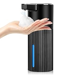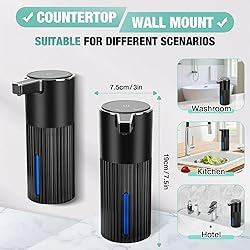 【SLEEK MODERN DESIGN WITH TIMELESS APPEAL】Crafted in black matte plastic with chrome-trimmed edges, this automatic foam soap dispenser features classic vertical for a minimalist yet elegant look. Its contemporary design seamlessly blends into modern bathrooms, kitchens, or hotel settings, elevating any space with understated sophistication 【ADVANCED PERFORMANCE & UPGRADED MECHANICS】Engineered with enhanced pumps, pipelines, and structural upgrades, our dispenser boosts foam output speed by 82%, reduces 99% leakage, and minimizes 90% clogging. Enjoy quick, mess-free operation for handwashing, dish cleaning, showers, or hair care 【SMART TOUCH CONTROL & CUSTOMIZABLE DISPENSING】Adjust foam volume across 4 levels via one-touch operation. The LCD screen displays real-time battery life and gear settings, ensuring effortless use for adults and kids. Perfect for households aiming to teach children proper handwashing habits 【LARGE CAPACITY & UNIVERSAL SOAP COMPATIBILITY】The 400ml/13.52oz tank includes a wide-mouth refill design and a visible window to monitor soap levels. Compatible with foam soap (direct use) or liquid/gel soap (dilute 1:3 with water). Ideal for kitchens, bathrooms, or high-traffic areas 【LONG-LASTING BATTERY & FLEXIBLE PLACEMENT】A single charge lasts 90+ days (Gear 1: 10 uses/day). Mount it on walls or place it on countertops using included 2 no-trace stickers. Versatile for homes, hotels, or offices—no frequent charging or messy setups required 【1-YEAR WARRANTY & EASY SETUP】Includes a detailed manual, mounting hardware, and USB cable. Backed by a 1-year warranty—contact us via Amazon for support