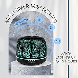 ARVIDSSON 500ml Essential Oil Diffuser, Metal Diffusers for Essential Oils, Aromatherapy Diffuser for Large Room, Color Mood Light & Mist Timer Setting, Gift for Women - Black Tree