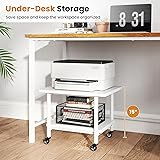 Giantex Under Desk Printer Stand, 2-Tier Mobile Printer Table with Storage Shelf, Lockable Wheels & Metal Frame, Rolling Printer Cart Holder, Storage Rack for Home Office Scanner Fax Machine (White)
