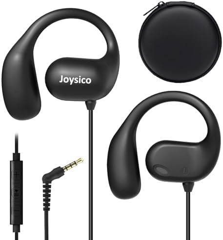 Joyico Wired Open Ear Headphones with Microphone, Volume Control, Wrap Around Ear Hook & Case, Over Ear Earbuds for Sport Running, On Ear Out of Ear Earphones Comfortable for Sensitive & Small Ears