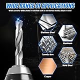 【Precision Size】: HOYUSK drill bit set including 1/2", 3/8", 1/8", 1/16", 3/16" and 1/4 inch drill bits, ideal for detailed and precise drilling tasks. These small drill bits are perfect for fitting into tight spaces. Whether you need a metal drill bit set for steel or drill bits for hardened steel, our drill bits sets offer the precision and versatility you require. 【Ultrafine Tungsten Steel for Strength and Efficiency】: Crafted from 0.6um micro-particle cemented carbide, HOYUSK’s carbide drill bits provide unmatched wear resistance and strength. As an exclusive drill bit for high hardness and high-speed cutting applications, it significantly improves work efficiency. The metal drill bits for steel are engineered to handle tough materials with ease, ensuring long-lasting performance 【Sharp Spiral Flutes for Smooth and Fast Cuts】: The sharp spiral flutes on our metal drill bits ensure neat and smooth cuts with high cutting edge strength and fast cutting speeds. The spiral groove design facilitates smooth chip removal, with large chip removal space and small chip removal force, reducing drilling heat and pollution. Our drill bits for metal offer a seamless drilling experience, making them ideal for a variety of materials 【Versatile Use Across Multiple Industries】: HOYUSK’s tungsten carbide drill bits excel in drilling copper and aluminum alloys. They also handle cast iron, stainless steel, and mold steel with precision. Ideal for maintenance departments, machine shops, and other industries, this drill bit for metal provide reliable performance and durability. Whether you're working on a specific project or need a versatile drill bit set, HOYUSK has the perfect solution 【Stable Clamping Design for Precision and Smoothness】: The clamping stable round shank design of HOYUSK drill bits ensures stability during operation, preventing shaking and slipping. This design provides tight clamping for precise drilling. The sharp flutes on our metal drill bit offer quick, smooth, and neat cuts with no burrs, thanks to our advanced technology that reduces cutting force and drill breakage rate. Our drill bits for steel are engineered for hole wall quality and overall performance 【Tips】: Due to the exceptional hardness of tungsten carbide, these drill bits require high-precision machining environments. Low-precision tools like handheld drills or poorly calibrated bench drills are not recommended, as misalignment or vibration may cause breakage