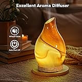 Elegant Design: Handcrafted glass exterior with dessert patterns in yellow and brown waves. This glass diffuser perfectly aligns with simple, minimalistic, modern and contemporary decor styles. Our air diffuser is not just functional but also an exquisite decor for shelves, tables, or desks in homes, offices studios or spa rooms, adding a decorative touch and delightful scent. All-in-one Diffuser: More than just an aroma diffuser for home, it's also a humidifier and night light for any space. With faster nebulization, you can expect a burst of fragrant aroma in seconds. Visualize a fresh, therapeutic ambiance, setting the mood for work, sleep, yoga, read or study. Its compact and portable design is ideal for homes, offices, or gyms. Powerful Functionality: Equipped with an upgraded ultrasonic nebulizer, our oil diffuser for home efficiently disperses fine cool mist and fragrance. Choose from 7 LED colors, each with dim and bright settings, either fixed or rotating. Mist and light functions can run separately or together, ensuring flexibility.This scent diffuser for essential oils is simple to use and easy to clean, it's the ideal addition to living rooms, bedrooms, or bathrooms. Safety-First Design: Customize run-time with 0.5/1/2/3H settings or opt for continuous mode. If the water runs dry, the electric diffuser has a safety switch and will automatically shut off, ensuring a worry-free sleep. This room diffuser's whisper-quiet, noiseless operation lets you enjoy a scented life without disruptions, making it utterly safe for both kids and pets. Perfect Gift Choice: Our fragrance diffuser, with its sophisticated design and top-tier functionality, comes beautifully packaged, making it the ideal present. It's perfect for family, friends, teachers, kids, or significant others, especially for occasions or holidays like Christmas, Valentine's Day, Thanksgiving, Mother's Day, Teacher's Day, or whenever you want to express gratitude or appreciation.