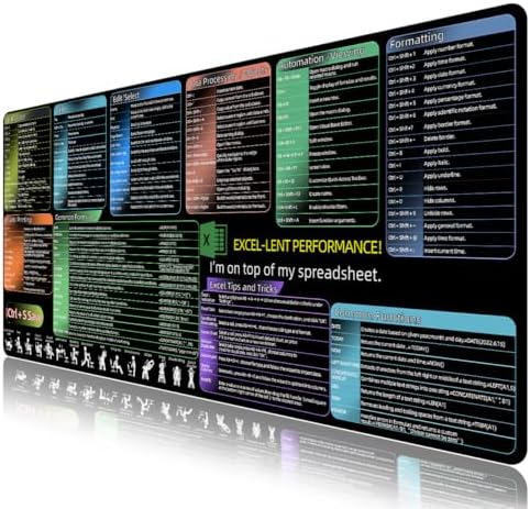 - 【Practical Excel Shortcuts Mouse Pad】 Boost productivity with this non-slip cheat shee desk pad featuring essential unctions, formulas, and tricks . Perfect for beginners & pros. Durable, spill-resistant & ideal for any workspace. Never forget a shortcut again!