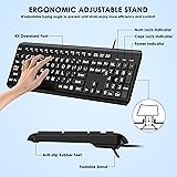 - Large Print Computer Keyboard, USB Full Size Wired Keyboards, Easy to See, Easy to Setup Large Print Computer Keyboard, Wired USB Full Size Quiet Keyboard with 4X Oversized Print Letters for Visually Impaired Low Vision Individuals Easy to See and Type for PC, Laptop,Windows