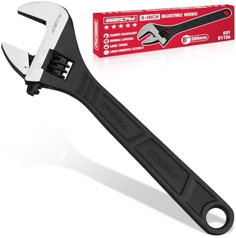 SEDY 8-Inch Adjustable Wrench, Black Oxide Finish Wide Jaw Spanner with Inch/Metric Scale, Premium Drop Forged Steel for Automotive Plumbing and Household Repairs