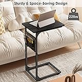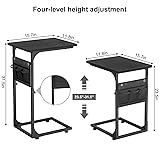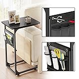 Fixwal C Shaped End Table Adjustable Height Side Table for Couch, TV Tray with Storage Bag Slide Under Sofa Small Tables for Living Room, Bedroom & Office, Black