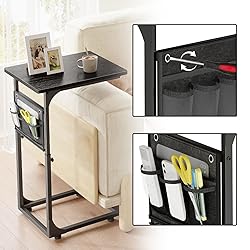 【Adjustable Height C-Table】 The C-shape side table, measuring 15.7"L x 11.8"W with 4-level height adjustment (23.5"-32"), effortlessly fits into sofa gaps and narrow spaces. It perfectly adapts to couches, beds, desks, or recliners, offering versatile solutions for small-space living. 【Modern Side Table】 Whether you are enjoying coffee, working on a laptop, or organizing bedside essentials, this end table has you covered. The side pocket, crafted from tear resistant polyester with three breathable mesh panels, lets you quickly spot and grab remotes, magazines, chargers, or daily necessities. 【Sturdy & Stable】 The metal frame and thickened wooden top sustain up to 22 lbs. Four adjustable plastic feet are attached to the sofa side table they prevent floor scratches and can be fine-tuned on uneven surfaces to enhance stability. 【Quick Assembly, Lasting Use】Simple structure, numbered parts, and easy-to-follow instructions allow you to finish the assembly of this sofa side table effortlessly occasional table. 【Adapts to Your Lifestyle】 From movie nights and home office setups to midnight snack sessions, its modern minimalist design seamlessly fits into any space.