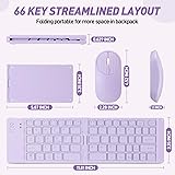 Foldable Mini Rechargeable Bluetooth Keyboard and Mouse Combo, 2.4G Wireless and Bluetooth,(Sync Up to 3 Devices), Ultra-Slim Travel Folding Keyboard for iPhone iPad Mac Android Windows iOS(Purple)