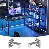 Ample Storage Space: This corner computer desk features a 5-tier side shelf, offering versatile storage options for books, office supplies, files, decor, or tech and gaming accessories, keeping your workspace organized and clutter-free. You can also place your decorative figurine on these shelves. This gaming desk also provides a hook for headphone or bag storage. Built-in Power Outlet & Colorful LED Lights: Equipped with convenient power outlets and USB ports, this desk allows you to charge your devices simultaneously—perfect for charging phones, tablets, laptops, and more. The small gaming desk comes with LED lights that can be remotely controlled via an app. The integrated LED light strip offers 213 modes and over 10,000 color options, allowing you to adjust brightness and hues to match your mood, enhance focus, or create a relaxing ambiance. Reversible 5-Tier Shelves: This L-shaped corner desk features a 5-tier side shelf that can be installed on either the left or right side, allowing you to personalize your setup to fit your home office or bedroom. It’s an ideal desk for your bedroom or limited spaces, helping you create an excellent home office environment. Sturdy Structure: Equipped with two "X"-shaped back braces on the sides, the desk enhances its overall stability, preventing any wobbling or shifting during use. Whether you're working or gaming, this desk provides a solid and reliable foundation for all your activities, making it the perfect choice for a dependable workspace. Clearly Installation Experience: We provide comprehensive installation videos for your convenience. You can quickly reference it through the product page or by scanning the transparency label on the packaging. Additionally, we have included clear installation instructions and all necessary installation tools in the accessory box, ensuring you can complete the installation quickly and efficiently.