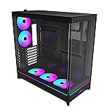 - MONTECH HS02 PRO, ATX Mid-Tower PC Case, Gaming PC, High-Airflow, Reversible Layout, Sturdy Curved Tempered Glass Front Panel, 5x ARGB PWM Fan Pre-Installed, Sink-in Design, Toolless Panels, Black, US