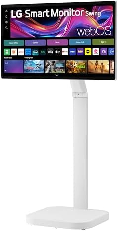 - Smart Monitor Swing's Effortless, Adaptable Display - True to its name, LG Smart Monitor Swing features a flexible stand with a torsion spring hinge, offering tilt, swivel, height, and Portrait Mode adjustments for effortless customization. The stable, wheeled base ensures solid support, while the sleek gray-white design fits any space.