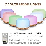 【Humidifier & Night Light】This ultrasonic essential oil diffuser is an amazing multi-functional aromatherapy device. You'll get one 500ml large capacity and easy to clean essential oil diffusers. It’s great to fit for the room, home, office and everywhere you want to put it. 【Easy to use & Simple to Operate】Our diffuser comes with an easy to use remote control that can control it from up to 16.5 feet and change the lighting and misting modes as well as set the humidifier's timer. The LED light can be fixed or cycled through. The diffuser has 60/120/180 minute timers and steady ON mode. You can also set intermittent mist via the remote control. 【Perfect for Diffent Occasions】 The mist and light functions of this aromatherapy diffuser work separately. You can turn off the light at night while sleeping. Or Which can offers a comforting glow as a night light. It's a wonderful companion for reading, sleeping, working or doing yoga. 【Ultra Quiet Design Diffuser】 This air diffuser uses ultrasonic technology to ionize the water into a delicate cold mist. No noise is generated during the working process and will not disturb your work and sleep. Once the water runs out, the essential oils diffuser will automatically shut off for your safety, So you can use it at night. 【Perfect Gift】This essential oils diffuser carefully crafted from quality and safe materials, BPA-free. Which is safe for your baby and pets. Aroma diffuser is a thoughtful and handy present for all kinds of holidays such as Christmas, Thanksgiving Day, birthday and Valentine’s Day. Express gratitude and love for your families, friends, beloved ones.