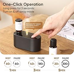 [Upgrated Waterless Essential Oil Diffuser]Compared to other traditional and waterless diffusers, our patented diffuser uses the latest Cold Air Diffusion Technology. It atomizes your favorite pure essential oils into 'nano mist', rapidly dispersing them into the air, generating powerful mist and fragrance. Without the need for water or heat, the essential oils remain undamaged and undiluted, preserving their natural scent. [No Need to Remove the Dropper Plug]Our diffuser features an innovative design that fits 18mm bottle thread, allowing you to use it effortlessly without removing the dropper plug. Compatible with a wide range of pure essential oils, our waterless diffuser accommodates bottles from 5ml to 50ml, offering greater flexibility and convenience. [3 Intensity Cycle Mode]Waterless diffusers for essential oils has three intensity modes.High Mode:Mist 60s,Pause 1min.Medium Mode:Mist 40s,Pause 3mins.Low Mode:Mist 20s,Pause 5mins.You can choose the mode that suits your needs for work, sleep, entertainment, sport, spa,etc. [Cordless and Portability Waterless Aroma Diffuser] It can support 7 days working time in low mode. Measuring just 4.69 x 2.2 x 2.17 inches and weighing 194g, it is incredibly easy to carry .Unique portable and cordless design is suitable for various scenarios, from reducing stress, to improving mood,perfect for home, hotels, travel, offices, and many other places. Enjoy a variety of fragrances wherever you go. [Ultra-Quiet & Efficient]Advanced noise reduction technology ensures operation at under 28dB, quieter than a library, ensuring a peaceful environment for you and your family.The Waterless Diffuser effectively covers 350 to 700 square feet, making it ideal for medium-sized spaces, continuously spreading delightful fragrance.