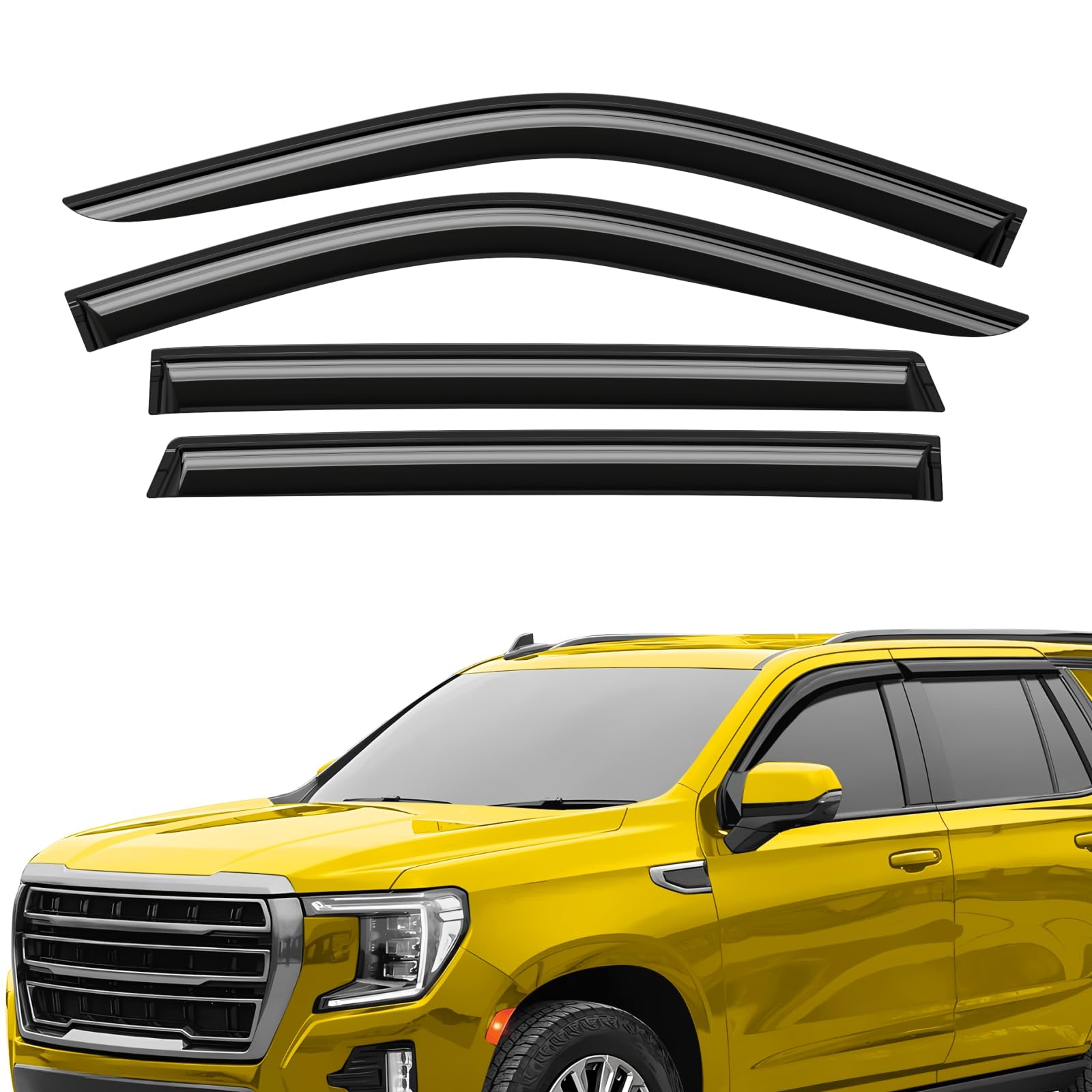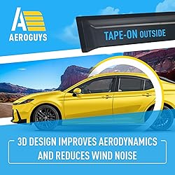 ATTENTION!!! These high-quality automotive window rain guards CUSTOM FIT only for Toyota Camry 2025-2026 Sedan. Incredibly Durable AEROGUYS Auto Window Deflectors – They are made with strong and tough polycarbonate which is clear and scratch-resistant. They also provide UV protection making your ride more comfortable under all weather conditions. Precisely Engineered – These window visors are designed and manufactured using very precise measurements and shaped with great care to ensure a perfect fit on your car windows providing you with maximum protection from rain, wind, and sun. No Tools Needed, Quick and Easy Assembly – These rain guards are very easy to fit. TAPE-ON INSTALLATION provides perfect fit for your car. Just slip it onto your car’s window and your job is done within minutes. There is no drilling or no tools required. Be sure that AEROGUYS window deflectors are water resistant, sun protective and will not bend, break or crack regardless of the weather conditions. Full-size Side Window Wind Deflectors – This is a set of 4 vent visors for the side windows of your vehicle. These automotive vent shades add more muscle to your car and a sleeker profile making it more aerodynamic. Make your vehicle more comfortable and add to its style at the same time with these durable visors.