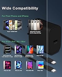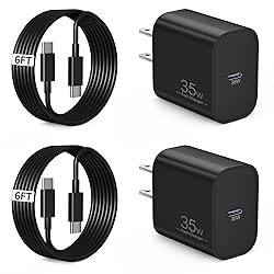 35W Fast Charging for Google Pixel Series: Enjoy fast charging with 35W Max output for your Google Pixel 10/9/8, Google tablet, and other USB-C devices. Charge for your Google Pixe 10/9 Pro XL up to 60% in just 30 minutes, 5X Fast charging speed, help you work efficiently 6FT Pixel Fast Charger Cord: The 6feet long length lets you freely charge for your Pixel devices from different occasions such as on couch, bedroom, at offices, or on the go. Supports PD fast charging up to 60W (3A/20V) and data transfer speeds 480Mbps Widely Compatibility: 35W USB C Fast wall charger for Google Pixel 10/10 Pro/10 Pro XL/10 Pro Fold/9/9 Pro/9 Pro XL/9 Pro Fold/8/8a/8 Pro/7/7a/7 Pro/6/6a/6 Pro/5/5a/4/4a 5G/4 XL/3a/3a XL, Pixel Tablet, Pixel Slate, Pixelbook, Samsung Galaxy S25/S24/S23/S22/S21/S20/Ultra, Note 20/10, LG, Moto, Tablet, Android Phones, and more Safe and Reliable: This Pixel fast charger built in smart IC chip, automatically matches the current required by the device to maximize the charging efficiency. Multiple safety protection systems to prevent over-charging, overheating and short-circuit to keep connected devices safe What You Get: 2 x 35W USB C Wall Charger Block Power Adapter, 2 x 6FT USB C to USB C Cable. If you have any questions or issues, please get in touch with us. Our dependable customer care will keep online 24/7 and respond to you with a suitable solution
