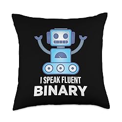 I Speak Fluent Binary This design with a robot is made for coders and programmers. Perfect present for anyone who loves the different programming languages and loves binary. 100% spun-polyester fabric Double-sided print Filled with 100% polyester and sewn closed Individually cut and sewn by hand Spot clean/dry clean only