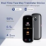 AI Translator in 150 Languages:The Language Translator Device is equipped with advanced speech recognition and cutting-edge neural network translation technology. Achieve ultra-fast and accurate translation, instant bidirectional translation can respond in just about 0.5 seconds. Real-time translation accuracy is 98%, just connect your phone to WiFi or hotspot to use. Accurate Online/Offline Language Translation:The translator device provides instant two-way real time translation, and in support of an impressive 150 languages, language translator device cover most global languages spoken by various countries and regions. The instant two way translator device provide you with 21 offline languages without the Internet. 【Chatgpt and Smart Recording】This voice translator device real time is equipped with the most popular Chapgpt application. The language translation device acts as your meeting record assistant, recording 60 minutes of audio memos. It supports a variety of recorded translations, ideal for lectures and conference recordings. 【HD Picture Translation】The Language translation device is equipped with 8 million HD cameras. Supports offline translation in up to 75 languages and 40 languages. The voice translator device real time can be switched directly and at will in the overlay translation and the read-play translation. Helps you read menus/logo/magazines/labels in different languages. 【Ultra--Long Battery Life】The portable translator has a built-in 2000mAh rechargeable lithium battery, which can work continuously for 6-8 hours, standby for 7 days, and fully charge in just 1-2 hours. The AI Translator also supports exchange rate conversion, unit conversion, phone translation, simultaneous interpretation, group translation, and also supports Bluetooth functions.