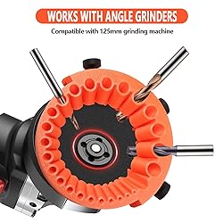 - Transform your dull drill bits into razor-sharp cutting tools with this innovative drill bit sharpener attachment. Compatible with 125mm angle grinders, this versatile sharpener handles bits ranging from 2 to 13mm in diameter. The bright orange housing features multiple precisely-sized holes and an intuitive design for straightforward operation. Using this sharpener is simple - just attach it to your angle grinder, secure it with the side screws, insert your drill bit into the appropriate sizing hole, and let the sharpening begin. The durable construction ensures consistent results every time you need to restore your bits' cutting edges. Perfect for DIY enthusiasts and professionals who want to extend the life of their drill bits while maintaining optimal cutting performance. Includes protective work gloves for safe operation. Save money by sharpening instead of replacing your worn drill bits with this practical workshop tool.