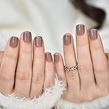 Glossy Solid Brown Press on Nails Short Squoval False Nails Acrylic Fake Nail Art Tips
