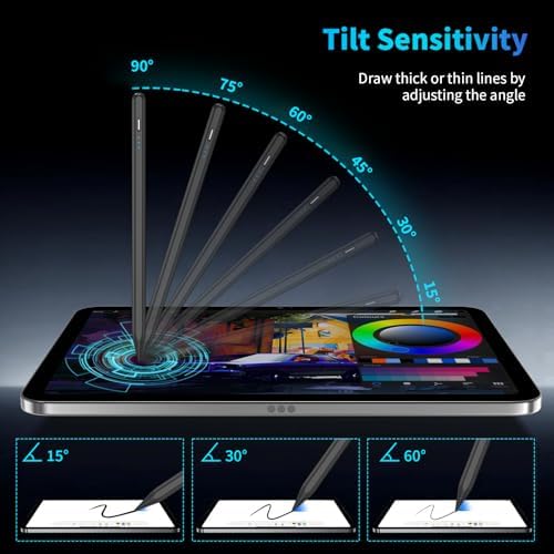 - Pro-Grade Tilt Control & Smart Palm Rejection: Experience true artistic freedom for Apple Pencil pro alternative featuring 1:1 tilt sensitivity - shade naturally by angling your stroke (15°-90° detection range). The palm rejection intelligently ignores hand contacts while maintaining 0.2mm precision, letting you sketch/write comfortably without gloves
