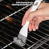 Multi-Functional Grill Cleaning Kit:Effortlessly clean grill grates with this 3-in-1 tool combining a V-shaped hook brush, scraper, and heavy-duty bristles. Perfect for removing grease, burnt residue, and debris from gas, charcoal, or pellet grills. Stainless steel construction keeps long-lasting performance. Ideal for BBQ enthusiasts seeking efficient, time-saving grill accessories. Heavy-Duty Design:Crafted with premium stainless steel bristles and a V-shaped head, this brush tackles tough grime without damaging grill surfaces. The ergonomic handle keeps control. A must-have for outdoor cooking, camping, or backyard barbecues. Efficient Scraping Action:The integrated scraper edge quickly clean stubborn particles, while the V-shaped hook cleans between grill gaps. Heat-resistant and lightweight for easy storage. Compatible with Weber, Traeger, and other major grill brands. Easy-to-Clean & Compact Storage:Rinse under water or wipe clean after use. Compact design with a hanging hole for convenient storage in kitchens, garages, or RVs. A practical upgrade from traditional single-function grill brushes. Versatile for All Grill Types:Works seamlessly on cast iron, porcelain, or stainless steel grates. Enhances grill maintenance routines for home chefs and professionals. A top-rated kitchen gadget for BBQ season, holidays, or everyday use.
