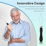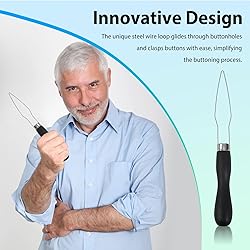 - Introducing our Button Hook Assist Device, a game-changer for anyone facing challenges with buttoning clothing. This 2-pack set is thoughtfully designed to restore independence and ease to your dressing routine. Each hook features a specially engineered steel wire loop that effortlessly catches and pulls buttons through holes, making the task as simple as a gentle tug. Whether you're dealing with small shirt buttons or larger ones on coats and jeans, our button hooks are universally compatible. The ergonomic design of the handle ensures a comfortable, secure grip, which is particularly beneficial for the elderly, individuals with arthritis, or anyone experiencing reduced hand flexibility. With our Button Hook Assist Device, you'll no longer need to rely on others for help with dressing. This set of three allows you to have a button helper in multiple locations, from your bedroom to your bathroom, ensuring you're always prepared. Simplify your mornings and regain your dressing independence with our easy-to-use button hooks, designed with your needs in mind.