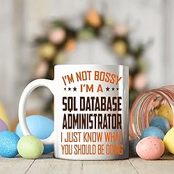 - Celebrate the leadership spirit (with a dash of humor) with our - I'm Not Bossy, I'm a Sql Database Administrator – I Just Know What You Should Be Doing mug. Designed for professionals who take pride in their skills and love a good laugh, this 11oz ceramic coffee cup is both practical and entertaining. Whether used at home or on the job, it’s perfect for sipping coffee, tea, or hot cocoa while reminding everyone who really knows best.Made from high-quality ceramic, the mug is microwave and dishwasher safe, offering long-term durability. The bold and funny quote is printed with high-resolution techniques to ensure it stays bright and fade-free, even after many cycles in the dishwasher.Looking for a lighthearted gift for a hardworking Sql Database Administrator? Whether it's for a birthday, coworker appreciation, retirement party, or simply because they deserve it, this mug makes a thoughtful and funny gift that professionals will actually use. Great for men or women in all industries—from mechanics and plumbers to electricians, nurses, and more.Bring joy, laughter, and a touch of sass to any workplace with a mug that says it all—without saying a word.