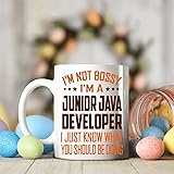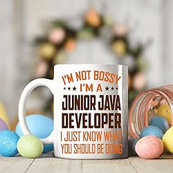 - Celebrate the leadership spirit (with a dash of humor) with our - I'm Not Bossy, I'm a Junior Java Developer – I Just Know What You Should Be Doing mug. Designed for professionals who take pride in their skills and love a good laugh, this 11oz ceramic coffee cup is both practical and entertaining. Whether used at home or on the job, it’s perfect for sipping coffee, tea, or hot cocoa while reminding everyone who really knows best.Made from high-quality ceramic, the mug is microwave and dishwasher safe, offering long-term durability. The bold and funny quote is printed with high-resolution techniques to ensure it stays bright and fade-free, even after many cycles in the dishwasher.Looking for a lighthearted gift for a hardworking Junior Java Developer? Whether it's for a birthday, coworker appreciation, retirement party, or simply because they deserve it, this mug makes a thoughtful and funny gift that professionals will actually use. Great for men or women in all industries—from mechanics and plumbers to electricians, nurses, and more.Bring joy, laughter, and a touch of sass to any workplace with a mug that says it all—without saying a word.