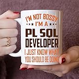 - Celebrate the leadership spirit (with a dash of humor) with our - I'm Not Bossy, I'm a Pl Sql Developer – I Just Know What You Should Be Doing mug. Designed for professionals who take pride in their skills and love a good laugh, this 11oz ceramic coffee cup is both practical and entertaining. Whether used at home or on the job, it’s perfect for sipping coffee, tea, or hot cocoa while reminding everyone who really knows best.Made from high-quality ceramic, the mug is microwave and dishwasher safe, offering long-term durability. The bold and funny quote is printed with high-resolution techniques to ensure it stays bright and fade-free, even after many cycles in the dishwasher.Looking for a lighthearted gift for a hardworking Pl Sql Developer? Whether it's for a birthday, coworker appreciation, retirement party, or simply because they deserve it, this mug makes a thoughtful and funny gift that professionals will actually use. Great for men or women in all industries—from mechanics and plumbers to electricians, nurses, and more.Bring joy, laughter, and a touch of sass to any workplace with a mug that says it all—without saying a word.