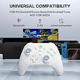Hall Effect Joystick: Experience drift-free gaming with the ECHTpower PC gaming controller. Its Hall Effect joysticks eliminate stick drift, providing precise, long-lasting responsiveness for every movement. 1000Hz Polling Rate: Dominate the game with this wireless pc controller, featuring a 1000Hz polling rate (2.4G/Wired) for lightning-fast input, making every moment count during competitive play. Multi-Platform Compatibility: Our PC controller works seamlessly with PC, Switch, iOS, and Android via Bluetooth, 2.4G wireless, or USB-C, offering versatile gaming across devices. NOTE: Before connecting, ensure that the mode switch on the back is set to the correct platform. 800mAh Battery: Play longer with the wireless controller for PC — enjoy up to 15 hours of uninterrupted gaming on a single charge. Customizable Turbo & Vibration: Adjust three turbo levels and four vibration settings for a personalized, immersive experience. Dynamic RGB Lighting: The wireless PC controller choose from 9 colors and 4 lighting modes to customize your setup. Durable Gel Buttons – 1 Million Clicks: Conductive gel buttons enhance feedback and are tested for 1 million clicks, ensuring long-lasting performance. 【NOTICE】ECHTPower PC wireless controller is NOT compatible with Xbox consoles.