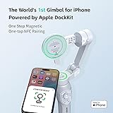 [Only for iPhone Effortless Mounting Instant Connection] Say goodbye to clips and balancing—just snap your iPhone onto the magnetic mount (non-charging) and go. With built-in NFC, your iPhone instantly recognizes the iPhone stabilizer MOGO for a one-tap, ultra-fast pairing. No fuss, no waiting—just smooth, stable shots in seconds.(Android phones are not supported) [MFi Certified Gimbal Stabilizer for iPhone] Just tap a face on your Apple Watch—even in a crowd—and your iPhone locks onto them, keeping them perfectly framed. iPhone video stabilizer with Apple DockKit technology, the camera smoothly adjusts as they move, look away, or turn back. No missed moments, no blurry shots—just pro-level tracking made easy. [Universal Tracking Unlimited Freedom] gimbled iphone holder stabilizer tracks faces seamlessly—not just in your iPhone’s camera, but in any app with video: TikTok, YouTube, FaceTime, Teams, Blackmagic Camera, and more. No extra sensors, no smartphone gimbal apps—just buttery-smooth, hassle-free tracking, straight from your iPhone. [One-Button Control Total Convenience] Forget fumbling with your phone screen—just press the phone stabilizer’s button to instantly launch your iPhone’s native camera, zoom in/out smoothly, and switch between front & rear cameras. No tapping, no distractions—just fast, intuitive control so you can focus on capturing the perfect shot. [360° Phone Gimbal Stabilizer with Tracking at Your Fingertips] Simply press the tracking button on iPhone stabilizer for video recording to instantly start or stop face tracking. With revolutionary 360° rotation capability, it flawlessly follows subjects from every angle - no limits, no blind spots. Capture stunning cinematic shots with this effortless one-touch control, perfect for vloggers and content creators who demand professional results without complicated setups.