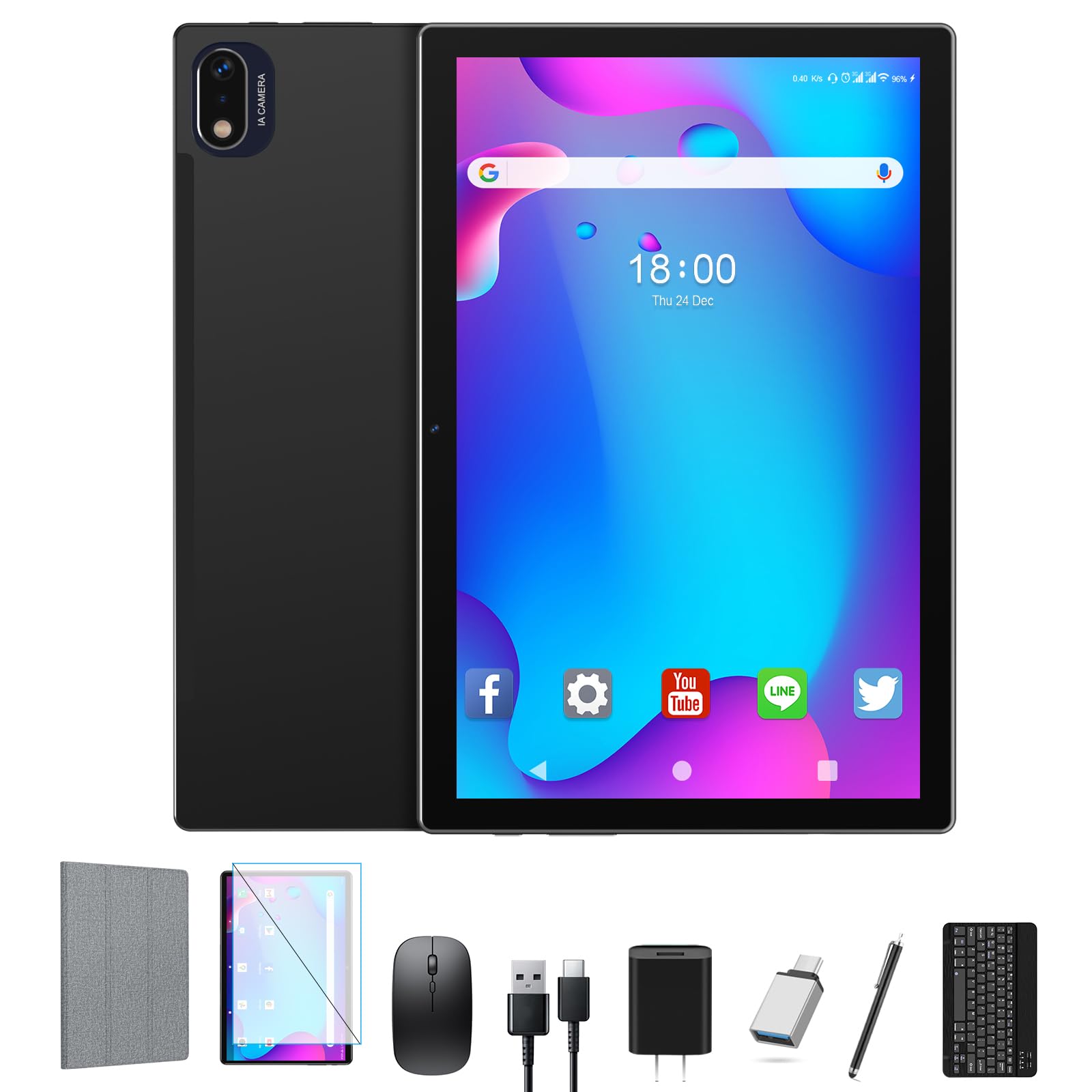 - 【WORK AND FUN WITH THE 2-IN-1 TABLET】The Android tablet with keyboard bundle comes with a mouse and foldable protection case. Let you flexibly switch the 10-inch tablet into laptop or computer mode, transform it into a powerful workstation and entertainment hub for movies watching, eBooks reading, music listening, web browsing, or replying to emails and handling documents.