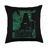 AI: It's like magic but real. This merchandise, inspired by futuristic technology and robotics, is for geeks like robotic engineer and software engineer. 100% spun-polyester fabric Double-sided print Filled with 100% polyester and sewn closed Individually cut and sewn by hand Spot clean/dry clean only