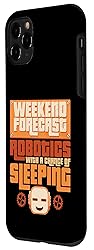 Weekend Forecast Robotics With A Chance Of Sleeping This merchandise design with a funny robotics phrase is made for someone who loves building robots and engineering. Perfect present for anyone who loves to drink. Two-part protective case made from a premium scratch-resistant polycarbonate shell and shock absorbent TPU liner protects against drops Printed in the USA Easy installation