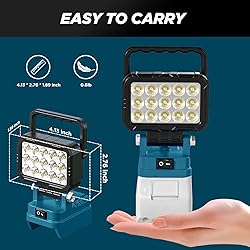 【Pay Attention】only work light, Batteries not included! This cordless LED work light is just compatible with Makita 18V Battery. 【Compatible with Your Makita Batteries】Tired of buying new battery systems? Our brilliant work light integrates directly with your existing Makita 18V ecosystem. It’s designed for seamless compatibility with popular models like the BL1820B, BL1830B, BL1840B, BL1860B, BL1880B, BL1815N, BL1850 etc. Just snap it on and go! 【BRIGHT LIGHTING & 145° ROTABLE DESIGN】HUAKAYO 40W 6000 Lumens with a color temperature of 6500K battery light Compatible with the makita 18V battery is equipped with 15 LED lamp beads and a 145-degree beam spread pivoting head, providing versatility and multi-directional lighting for dark environments, high brightness, becoming the outdoor lighting tool of choi 【CHARGE & WORK SIMULTANEOUSLY】This work light features 2 USB-A ports to charge your phone, tools, or gadgets on the go. Built with intelligent safety protections: prevents over-load, over-heat, and critically, safeguards your makita battery! It auto-shuts off at <15V to prevent damage, ensuring your battery's longevity. Stay powered & protected! 【UNIVERSAL VERSATILITY】The HUAKAYO LED handheld area light delivers exceptional portability and powerful illumination for countless scenarios. Perfectly suited for professional job sites, workshops, construction, and auto repair, it's also ideal for outdoor adventures like camping, fishing, and hiking. This cordless floodlight is the ultimate practical gift for DIYers, mechanics, and any handyman.