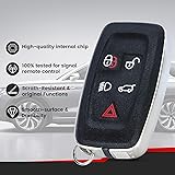 【NOTICE】This is just a key shell case, there is no interior(remote board,electronics,transponder chip) inside. Ensure your key is exactly same as ours(the same shape,buttons)then it will work. 【Fit For】 FCC ID: KOBJTF10A; Part Number:LR012395, LR020365, LR024070, 5E0U40147, 3521A-JTF10A, 3521A-JTF10B. The key shell case is fits for Land Rover LR2 2013-2014; for Land Rover LR4 2010-2018,for Land Rover Discovery 2015-2018,for Range Rover Evoque 2012,for Range Rover 2010-2015,for Range Rover Sport 2010-2015 【HOW TO USE】You can easily move the internal components from your old remote to this new replacement smart key case, just cut the key blade, take out the internal electronic products including the battery and chip from the original key and replace them into our key shell, then you can start to use. 【HIGHER QUALITY】Each key case is made of environmentally friendly materials, providing excellent impact resistance. It effectively protects the internal electronic components, offers comfortable handing, effective waterproofing, and has excellent wear resistance and durability, best replacement for broken or worn key. 【SPECIFICATION】 5 Buttons (Lock,Unlock,Light,Trunk,Panic). The product is an aftermarket item without logo and part number on the back. NOTE: Please confirm your original remote key has the exactly same buttons before purchasing