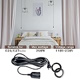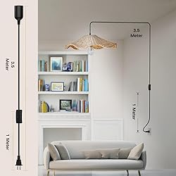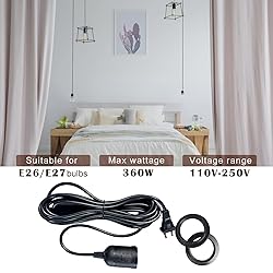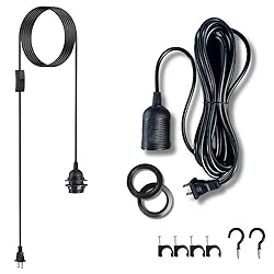 Ideal for DIY Projects and Celebrations: Whether you’re creating mason jar lights, paper lanterns, plant lights, grow lights, or cage lights, this cord is perfect for all your DIY lighting projects. It’s also a fantastic choice for special occasions like weddings, birthdays, Christmas, Thanksgiving, Halloween, Easter, Diwali, or any festival or party decoration. Let your creativity shine with this versatile lighting solution. Our lamp socket has 2 Rings and can hold lampshades, compatible with various market-available shades for creating unique, personalized lighting. This 15FT pendant light cord is UL certified for safety and quality, making it a reliable choice for home or commercial use. It features a standard E26/E27 socket compatible with most bulbs and lampshades, along with a convenient on/off switch for easy control. Perfect for DIY lighting projects, it offers flexibility, style, and peace of mind in one complete solution. Versatile Use: This pendant light cable is designed to suit a wide range of decorative needs. Compatible with various lampshades, it’s perfect for brightening up your kitchen island, dorm desk, study room, hallway, entryway, attic, basement, or any other space. Add an elegant touch to your wall décor, or use it to enhance your home, living room, bedroom, kitchen, dining room, office, restaurant, bar, or café. Whether it’s for a living or working space, this cord blends seamlessly into any setting. Easy Installation: The lamp cord comes with a threaded ring on the socket, allowing for easy compatibility with various lampshades, making it perfect for DIY projects. Simply install it on the ceiling, insert an E-26/E-27 bulb, plug it in, and enjoy your customized lighting. Control: This pendant light cord includes a simple on/off switch located about 1 meter from the plug, making it easy to control your lighting with a quick press. Please note, this version does not support dimming and should be used with standard bulbs. Detailed Specification: Our pendant light cord kit is 15 FT long, 3.28 FT long from ON/OFF switch to the plug, super handy to control the light socket; Fits threaded E26/E27 bulb, 2-Prong US AC Plug. Not dimmable, Max Power: 60 W, Working Voltage: 110V-230V