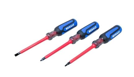- Kobalt 3 -Piece 4-in Screwdriver Set Kobalt's insulated screwdriver set provides three of the most common bit types and a 1000V insulated design for extra safety on the job. This essential kit provides 1/4" straight, #2 Phillips, and #2 square drives for a variety of applications. Shafts are insulated S2 steel for high-torque applications and the shaft is anchored in acetate for long life. Comfort-grip handles provide a firm grip and high torque capacity. A great all-around insulated tool kit for any electrician.