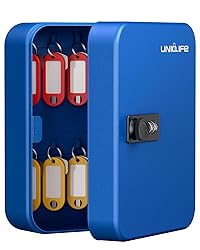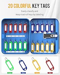 Uniclife 20 Position Key Cabinet with Combination Lock Resettable Blue Digital Security Storage Box Steel Key Organizer with Colorful Key Tag Labels Stickers and Hooks
