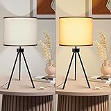 - HonoDing Tripod Table Lamp Black, Small Cute Bedside Lamp, Nightstand Light Simple Design with Beige Shade, Desk Lamps for Living Room, Bedroom, Office, Reading Lamp with E26 Socket