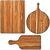 Teakhaus Teakwood Serving Boards Set of 3 - Includes a Regular Board, Round Serving Board and Paddle Cutting Board - Reversible, Edge Grain, Knife Friendly - FSC Certified