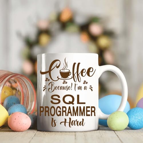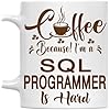 - [Humorous Gift for Sql Programmer Professionals]: This 11oz white ceramic mug features the funny quote: Coffee, Because! I'm a Sql Programmer Is Hard, perfect for Sql Programmer who rely on coffee to power through their challenging days.