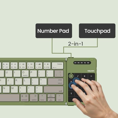 Nillkin Pocket Foldable Wireless Keyboard with Touchpad Numerical Pad for Travel Meeting for iPad Tablets Phone Laptop PC, Full Size (Small) Magnetic Folding Keyboard (Green)