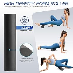 - The Krightlink 5 in 1 Foam Roller Set is a comprehensive solution for muscle recovery and self-massage. This patented set includes a high-density foam roller (13 inches long and 5.5 inches in diameter), a compact massage roller stick (11.5 inches long), a massage ball (2.5 inches long), and a resistance band. The foam roller is designed to provide deep tissue massage and trigger point release for your entire body, including your back, legs, and arms. The massage roller stick targets smaller muscle groups and hard-to-reach areas, while the massage ball helps release knots and tension in specific areas. The resistance band adds versatility, allowing you to incorporate strength training and stretching exercises into your routine. This all-in-one set is perfect for Pilates, yoga, and post-workout recovery, helping to alleviate muscle soreness, improve flexibility, and enhance overall wellness. With its durable construction and portable design, the Krightlink 5 in 1 Foam Roller Set is an essential tool for anyone seeking effective self-myofascial release and muscle therapy.