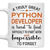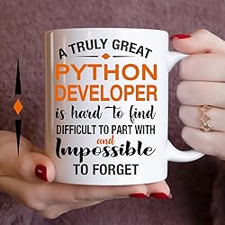 - Celebrate the remarkable dedication and influence of a truly great Python Developer with this beautifully designed 11oz white ceramic coffee mug. Featuring the heartfelt quote: A truly great Python Developer is hard to find, difficult to part with and impossible to forget, this mug makes a perfect gift for birthdays, retirement parties, farewell gatherings, or as a simple token of gratitude.Crafted from durable, high-quality ceramic, it’s microwave and dishwasher safe—making it both practical and sentimental. Whether you’re showing appreciation for a mentor, manager, teacher, or healthcare worker, this mug captures the essence of their impact.Each cup is carefully packaged to ensure safe delivery and ready gifting. Let someone special know they’ve made a difference. Give them a gift that reminds them every morning just how unforgettable they are.