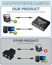 【Internet splitter 1 to 4】Easily split one ethernet splitter port into four, enabling 4 devices to connect simultaneously at 1000Mbps speed. Perfect for routers, modems, ethernet switches, PCs, TVs, and more 【Switch Includes 2×6.6FT Cat6 Cables】Comes with two premium Cat6 cable(6.6FT each), 1x USB Power Cable, 1x ethernet cable splitter for stable, high-speed data transmission. Etherne splitter 1 in 4 out compatible with Cat5/5e/6/7/8 ethernet cables 【USB Powered, Plug & Play】Connect the included USB powered ethernet adapter to any 5V/1A-2A source for reliable, constant operation. Etherne splitter 1 to 4 no drivers needed. LED indicators show device connection status 【Ethernet Splitter High-Speed】Aluminum alloy housing with PCB board and gold-plated RJ45 connectors ensures interference-free, ultra-fast ethernet splitter high speed network transmission up to 1000Mbps Ethernet Switch 【LAN Splitter Device Compatibility】LAN splitter 1 to 4 for ethernet splitters, routers, modems, internet splitters, NAS, PCs, smart TVs, and gaming systems. Ethernet switch works across Windows, Mac OS, Linux, and most networked setups